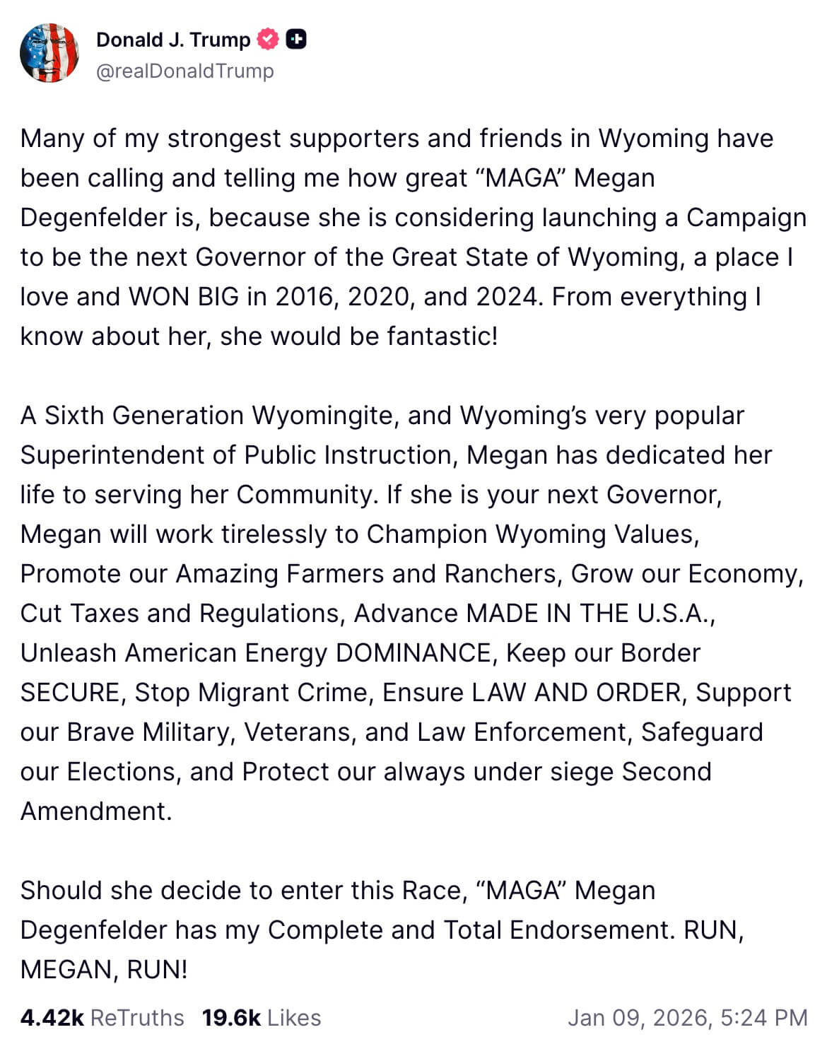 Megan Degenfelder was elected Wyoming’s State Superintendent of Public Instruction in 2022, making her one of the youngest statewide elected officials in Wyoming history and a strong conservative advocate for parents, students, and Wyoming values.